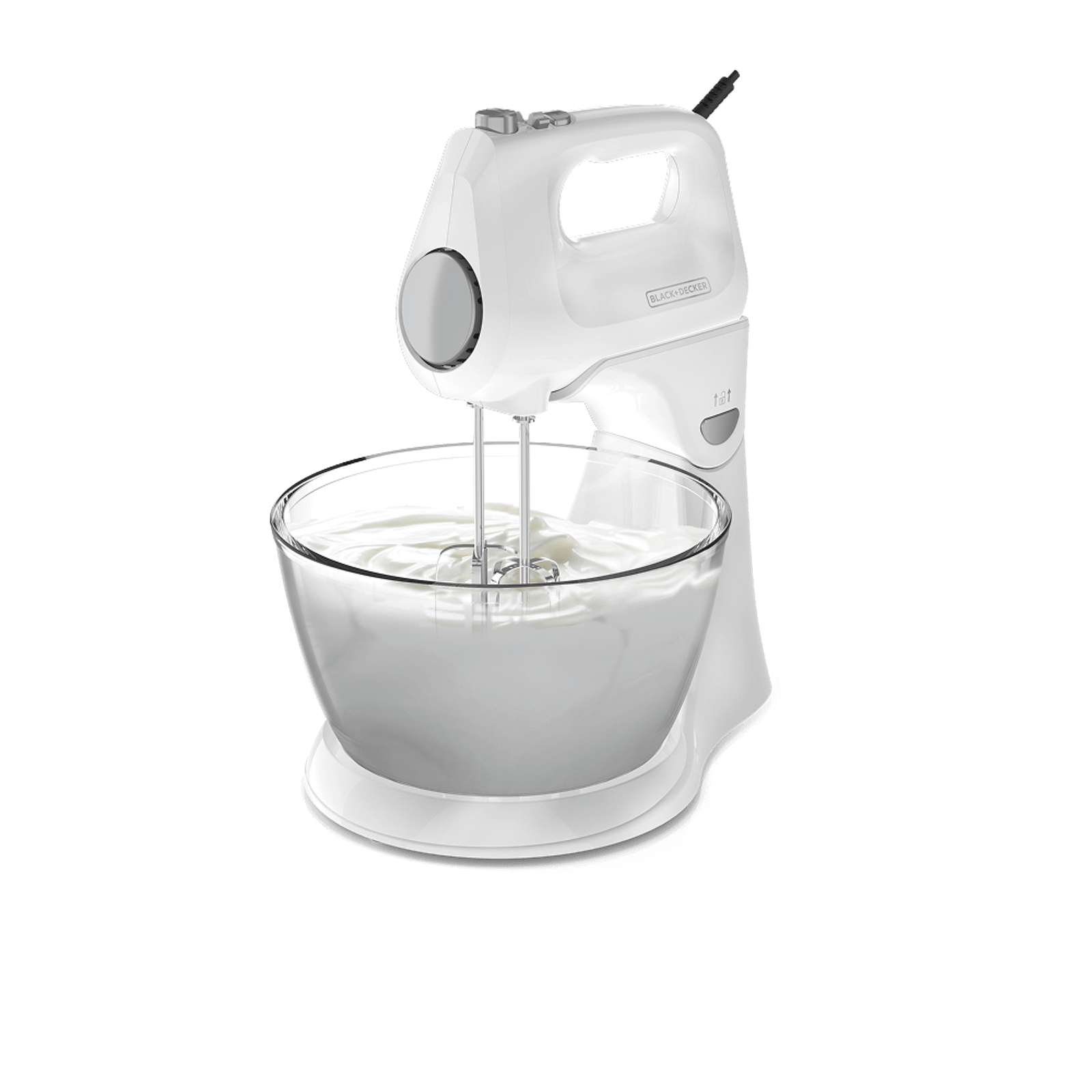 - Accesorios incluidos: 2 Batidores de alambre 2 Ganchos para masa, Tazón de Plástico y Tazón de Vidrio