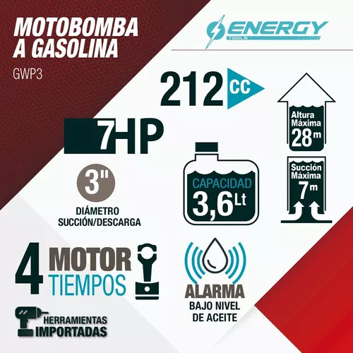 💧 Capacidad de Bombeo de 3.0″: Permite un caudal de hasta 450 litros por minuto, ideal para drenaje, riego y manejo de agua en diversas condiciones.