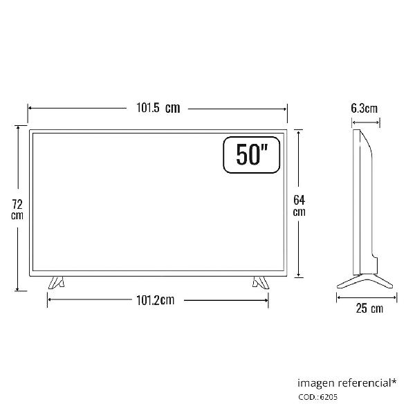 Dimensiones con base: Alto: 64 cm, Ancho: 101.5 cm, Profundidad: 6.3 cm